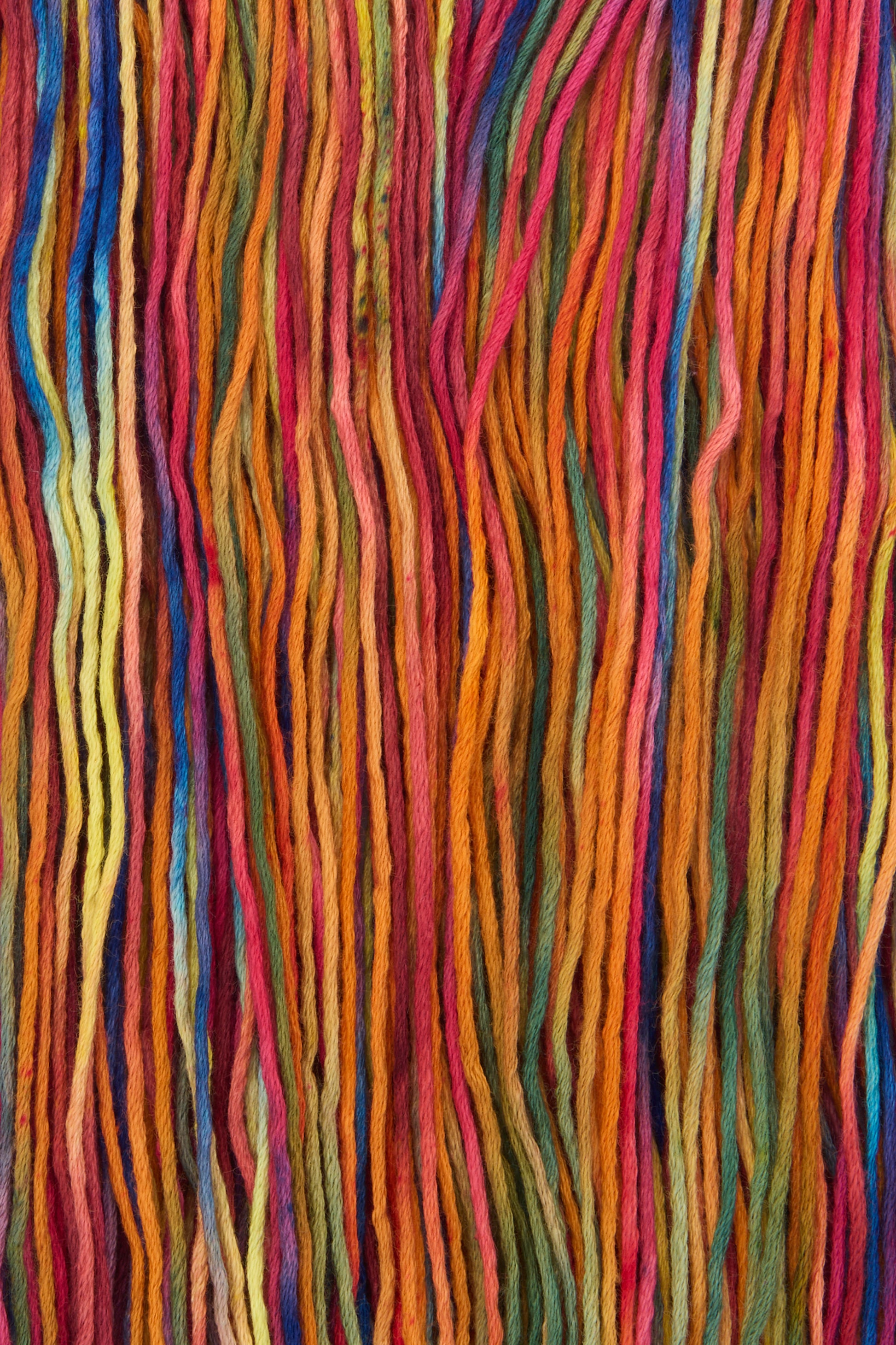 A mix of the full spectrum — from blues to yellows to reds. This yarn is 100% hand-dyed Pima cotton in a light worsted weight. The hand-dye process creates variations in color and endless creative possibilities.