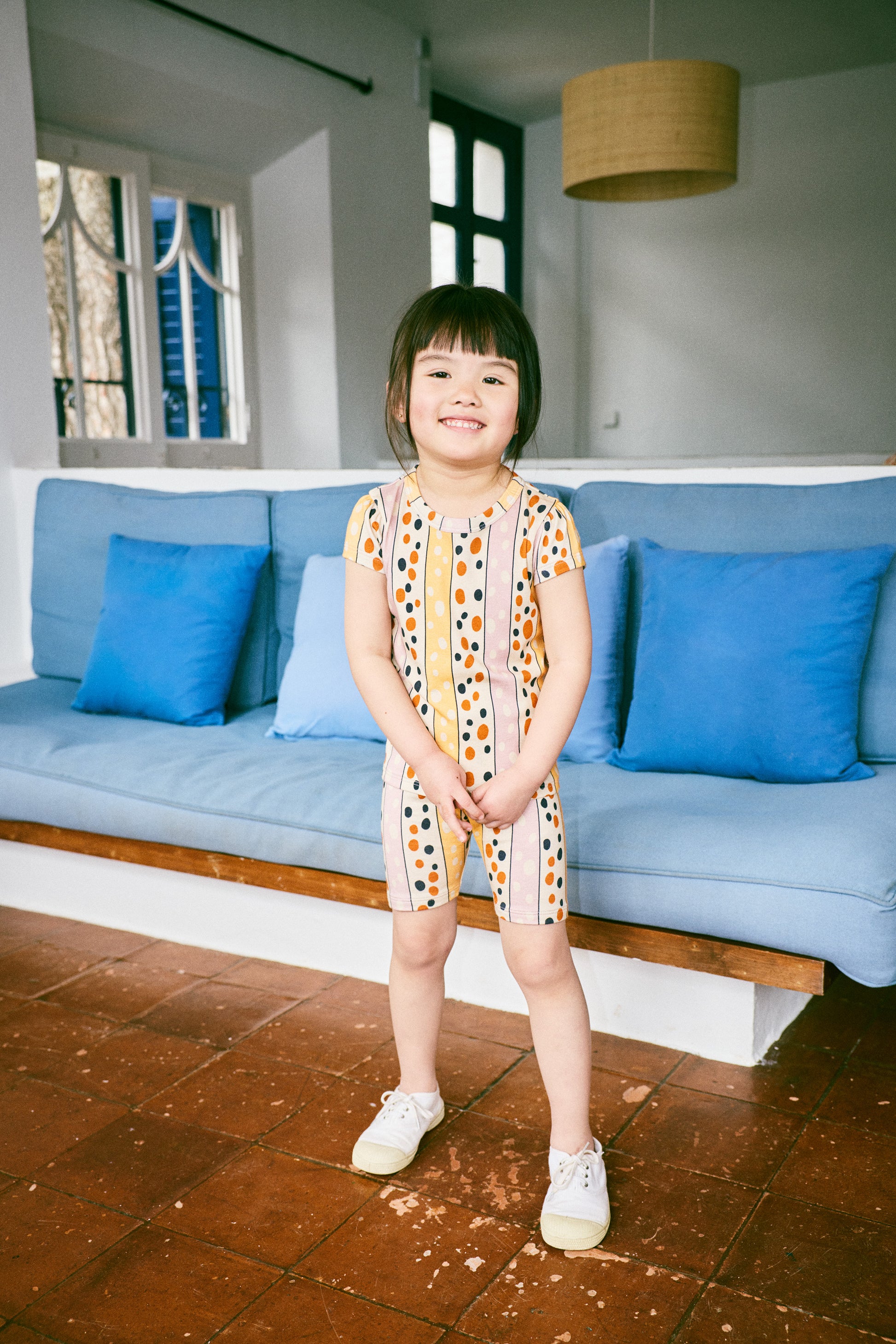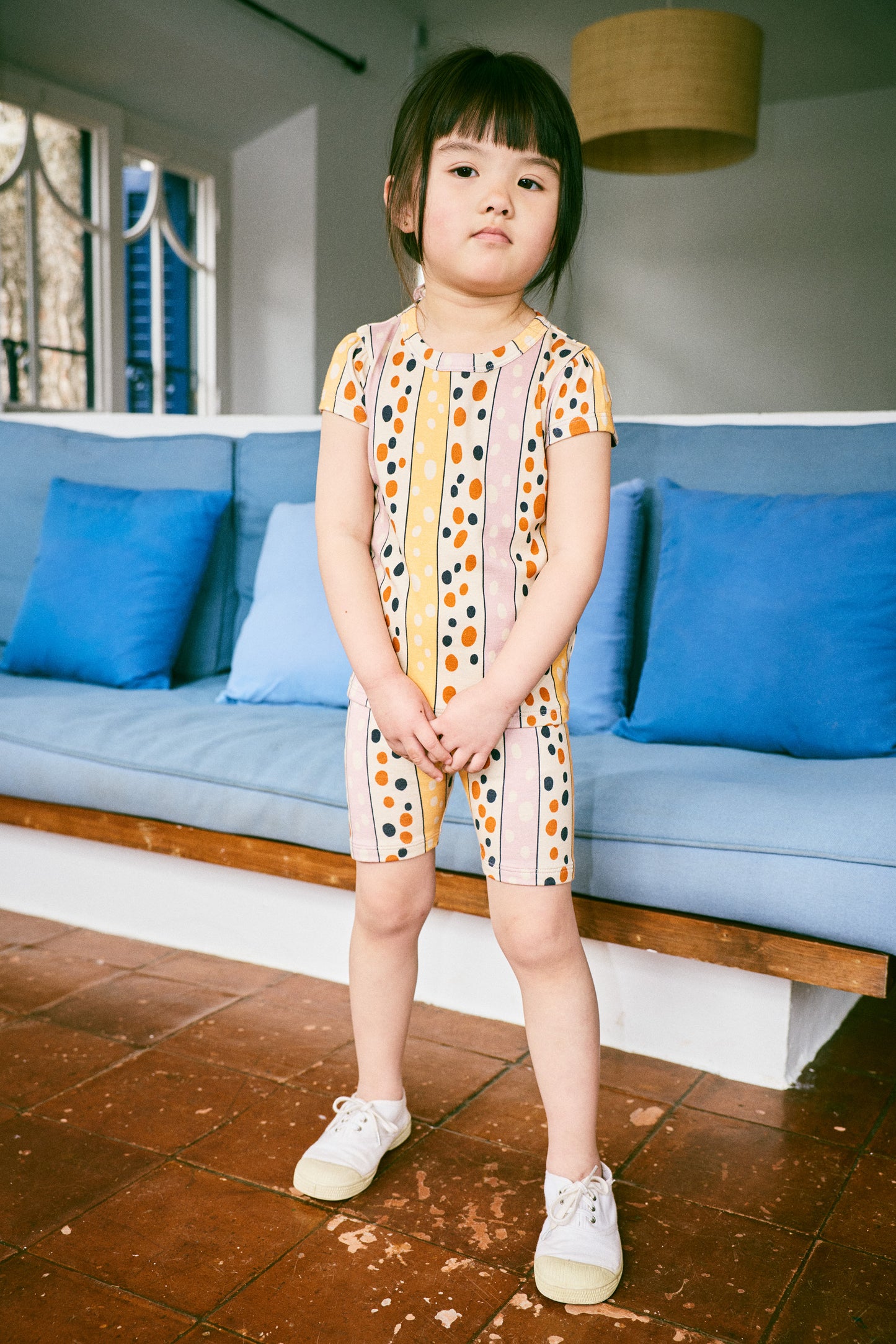 Bike Short - Frangipani Polka-Stripe