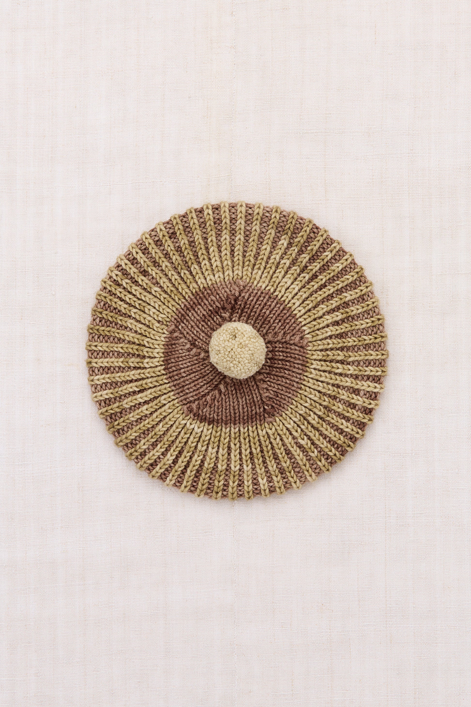 A Scottish-inspired hand-knit beret-style hat in Merino wool, featuring a chunky double brioche rib and a pom-pom accent on top.