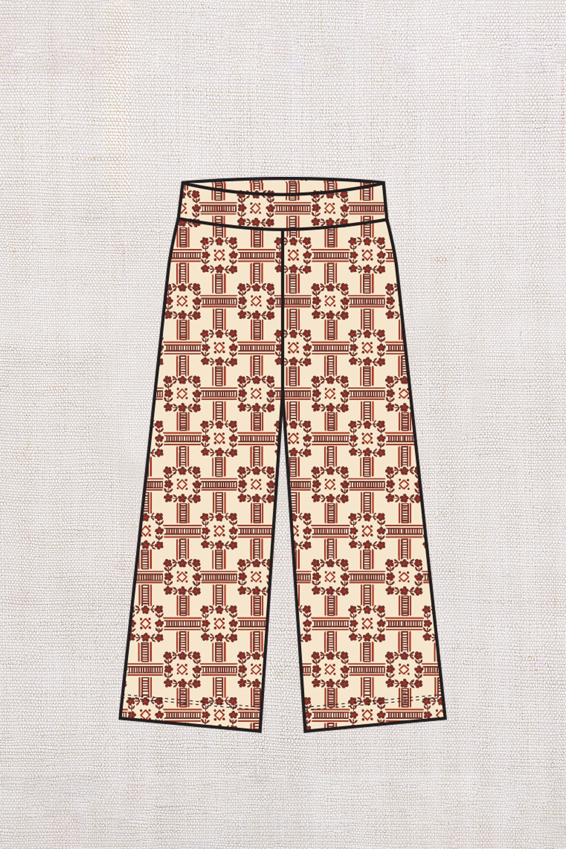 A fitted pull-on pant in organic Pima cotton, featuring a slight A-shaped flare and a soft banded elastic waist.