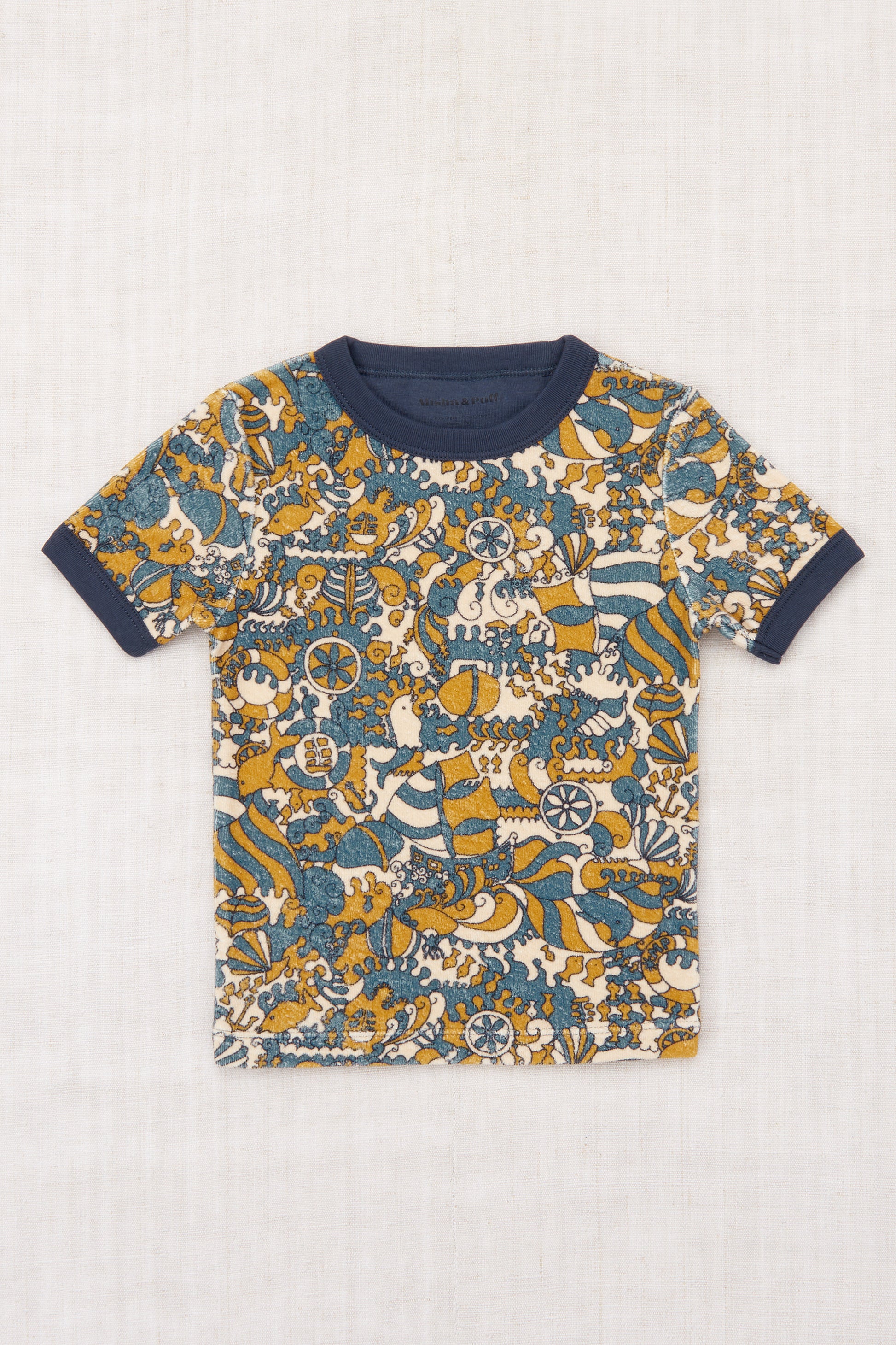 A classic slim-fit graphic ringer tee in terry, featuring a contrast neckline and sleeve trim.