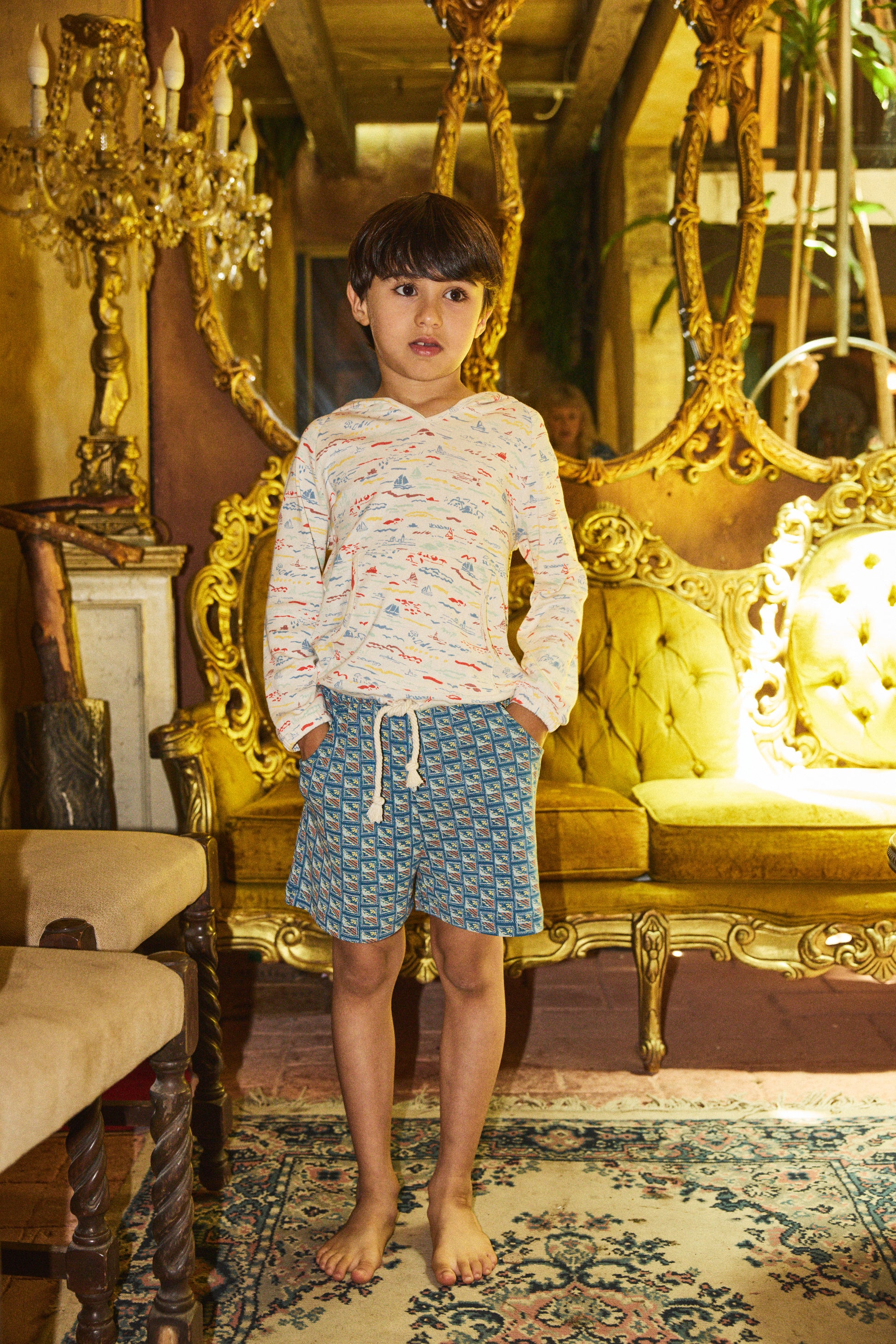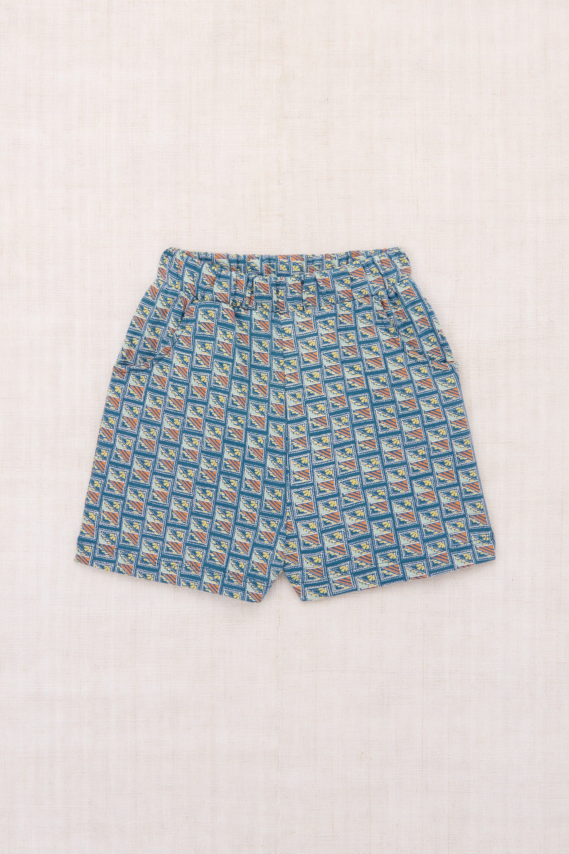 A vintage-style pull-on short in organic Pima cotton, with an elastic waistband and curved pockets.