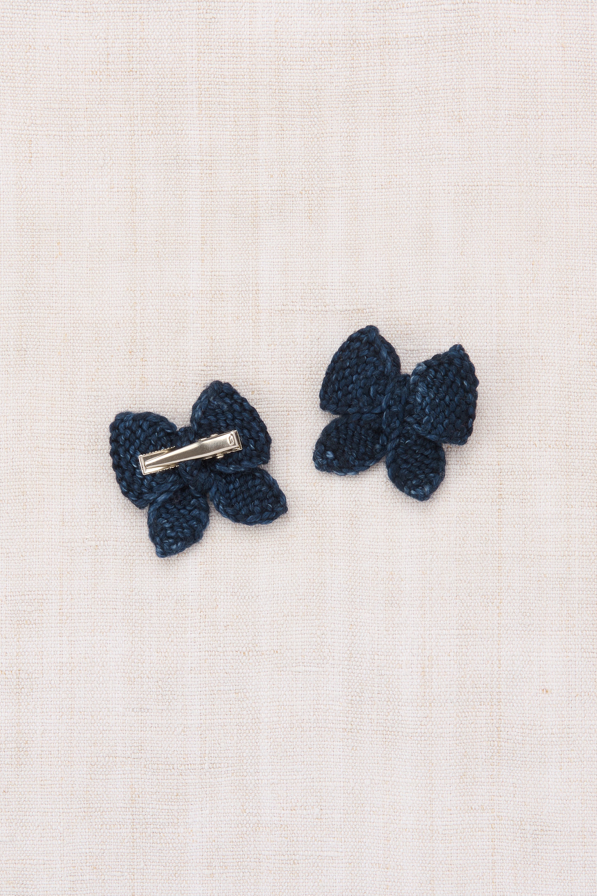 A hand-knit bow set in Merino wool, mounted on alligator clips. Perfect for matching your favorite knitwear, adding a pop of color, or gifting to a friend.